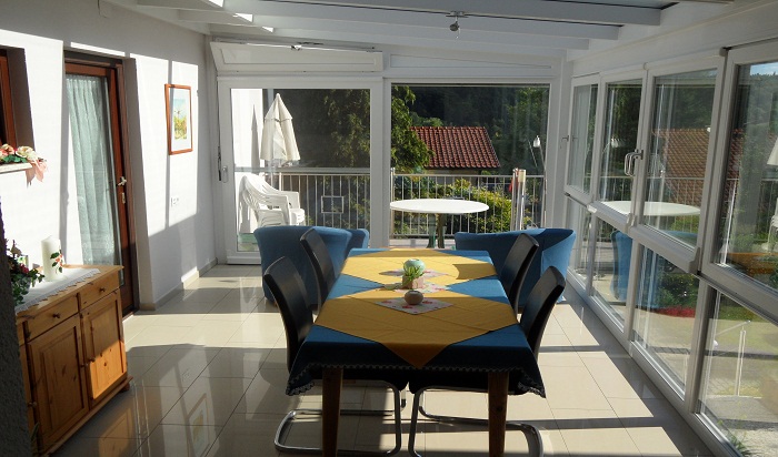 Wir bieten unseren Gästen eine Ferienwohnung für zwei bis drei Personen mit Wintergarten.